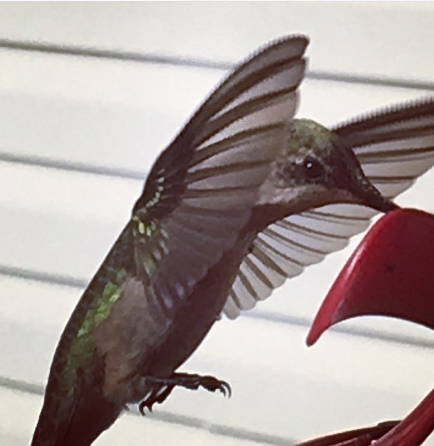 I put our feeder out a couple of weeks ago knowing the hummers would be a little early this year. Finally caught this little guy for a picture.
